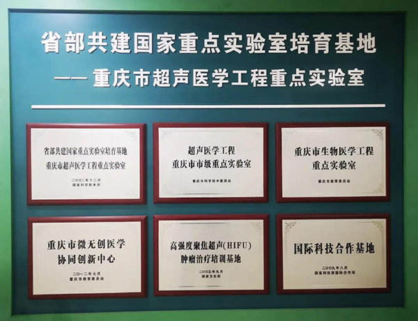實驗室先后獲批超聲醫學工程重慶市重點實驗室(2002年)、超聲醫學工程省部共建國家重點實驗室培育基地(2002年)、超聲醫療國家工程研究中心(2005年)超聲分子影像學重慶市重點實驗室(2014年)教育部微無創醫學省部共建協同創新中心(2019年)等多個國家級和省部級平臺。