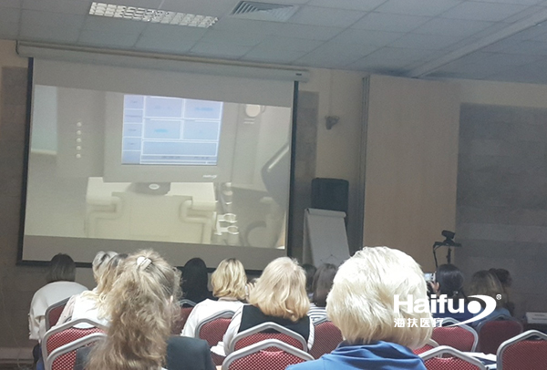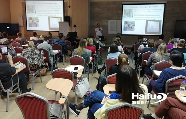 會上,該院美容與康復(fù)婦科科室的主任Apolikhina I.A. 醫(yī)生發(fā)表題為“An innovative technique for treating diseases of the vulva and cervix based on high-frequency focused ultrasound (HIFU) ”的演講,向在座的婦科醫(yī)生介紹了該院應(yīng)用聚焦超聲創(chuàng)新技術(shù)治療外陰及宮頸疾病的情況,并現(xiàn)場聯(lián)線醫(yī)院治療室,直播演示了該院Teterina T.A.醫(yī)生操作海扶醫(yī)療自主研發(fā)的海極星®CZF型超聲波婦科治療儀治療外陰白斑的全過程。