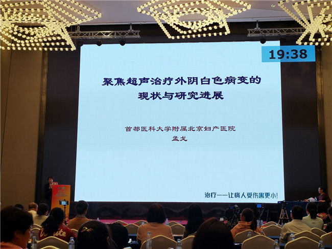 首都醫科大學附屬北京婦產醫院郭銀樹教授主持并由孟戈教授做了題為《聚焦超聲治療外陰白色病變的現狀與研究進展》的報告,向參會者分享了北京婦產醫院10年來使用海極星®的治療外陰白色病變的現狀及研究進展。