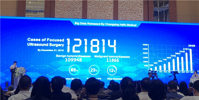 據王智彪介紹,中國原創的聚焦超聲消融手術技術2000-2018年在全球治療的良惡性腫瘤疾病共121814例,其中良性腫瘤109948例,惡性腫瘤11866例。這一數據,是目前聚焦超聲外科(FUS)領域樣本量最大的臨床手術量。