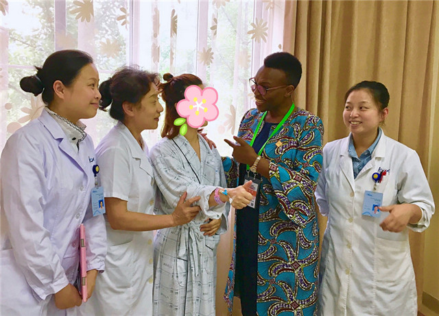 在海扶醫院,薩拉·塞雷姆大使到病房慰問了前一天接受了海扶刀®治療的患者,祝福她早日恢復健康。