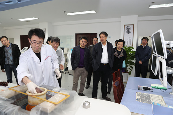 2018年10月24日,科技部基礎司郭志偉副司長,重慶市科技局牟小云副局長、馮光鑫處長,在重慶醫(yī)科大學陳蓉書記、黃愛龍校長、楊竹副校長的陪同下,調(diào)研省部共建國家重點實驗室培育基地——重慶市超聲醫(yī)學工程重點實驗室建設情況。