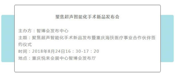全球?qū)<艺J(rèn)為,聚焦超聲手術(shù)是改變游戲規(guī)則的、革命性的、節(jié)約醫(yī)療成本的技術(shù),是顛覆性的技術(shù)創(chuàng)新。親自感受過(guò)FUS智能化未來(lái)手術(shù)室后,相信你對(duì)FUS手術(shù)會(huì)有一個(gè)全新的認(rèn)知,也會(huì)認(rèn)同這句話。8月23日-25日智博會(huì),重慶海扶醫(yī)療期待您的到來(lái)!