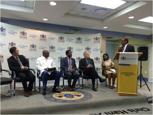 超聲治療技術臨床示范與培訓中心開幕儀式在Bara醫院放射大樓舉行,豪登省副省長(負責醫療衛生,簡稱MEC)Mahlangu女士主持儀式。她首先介紹了參加開幕儀式的嘉賓及觀眾,包括就坐于主席臺的豪登省省長Makhura先生、南非金山大學副校長Vilakazi教授、Bara醫院院長Mfenyana先生、中國超聲醫療國家工程研究中心張煉教授(項目中方負責人)、Bara醫院婦產科Raymond Sentza教授(項目南非方臨床負責人),以及臺下觀眾包括豪登省政府官員、衛生廳官員、醫務人員和中國重慶海扶團隊等。