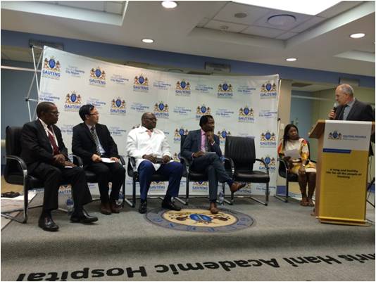 【從左至右:Bara醫院院長Mfenyana先生、豪登省省長Makhura先生、南非金山大學副校長Vilakazi教授、Bara醫院婦產科Setzen教授、豪登省副省長Mahlangu女士】