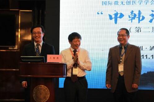 超聲醫(yī)療國家工程研究中心王智彪主任致辭,中韓論道,論什么道呢?論微無創(chuàng)醫(yī)學(xué)之道。在聚焦超聲領(lǐng)域,我們剛開始,希望大家團(tuán)結(jié)起來,為醫(yī)學(xué)進(jìn)步做一點(diǎn)貢獻(xiàn)。雖然在醫(yī)學(xué)領(lǐng)域,我們占的比重還很小,但大家一起努力,不會孤單。之后,王教授和陳文直教授、張煉教授一起向在場嘉賓表示感謝,希望通過這項(xiàng)技術(shù),和大家越走越近。