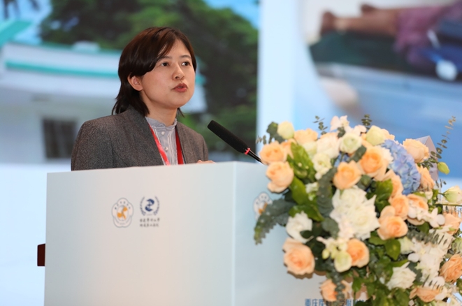 重慶海扶醫院張彩做《聚焦超聲治療在乳腺良惡性腫瘤的應用》講座。聚焦超聲治療乳腺良性腫瘤無傷口,適形治療、一次性治療、保留了乳房的美觀性、治療時間短。在乳腺惡性腫瘤上,提高患者生活質量,緩解疼痛、延長患者生存期。
